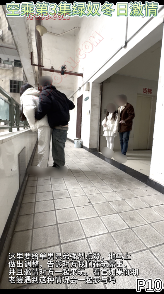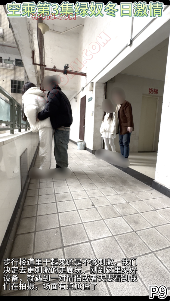 步行楼道里干起来还是不够刺激,我们决定去更刺激的走廊玩,刚到这里架好设备,就遇到一对情侣或者夫妻看到我们在拍摄,场面有点尬住了