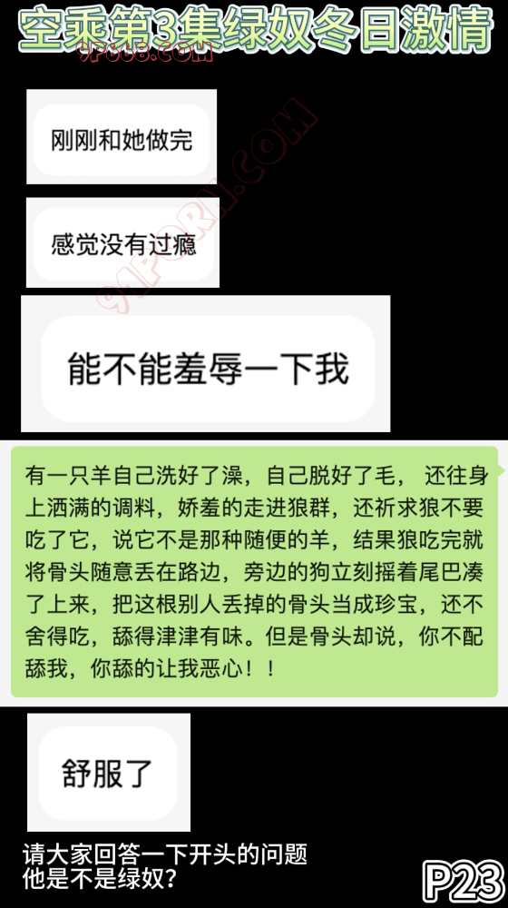 通过上面这个简单的故事,大家应该能够感受得到这是为什么会有咱们这个圈子的存在? 绿不是贬义词,奴只也是为了更好地全身心享受自己。跪地为奴,起身为友。
