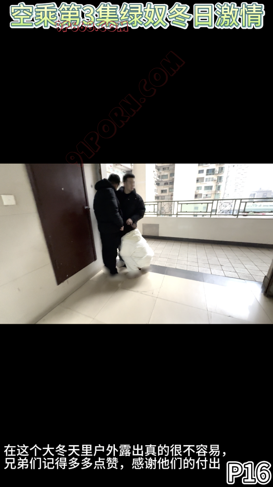 可能还是室外太冷了,如果是换成屏幕前的兄弟们来操作,遇到这种情况,我也会表示理解的,所以只能让空乘妹妹用嘴服务了,这时候男友也有勇气上来一起出境,不知道是不是看到单男的窘迫。给了他勇气,哈哈哈
